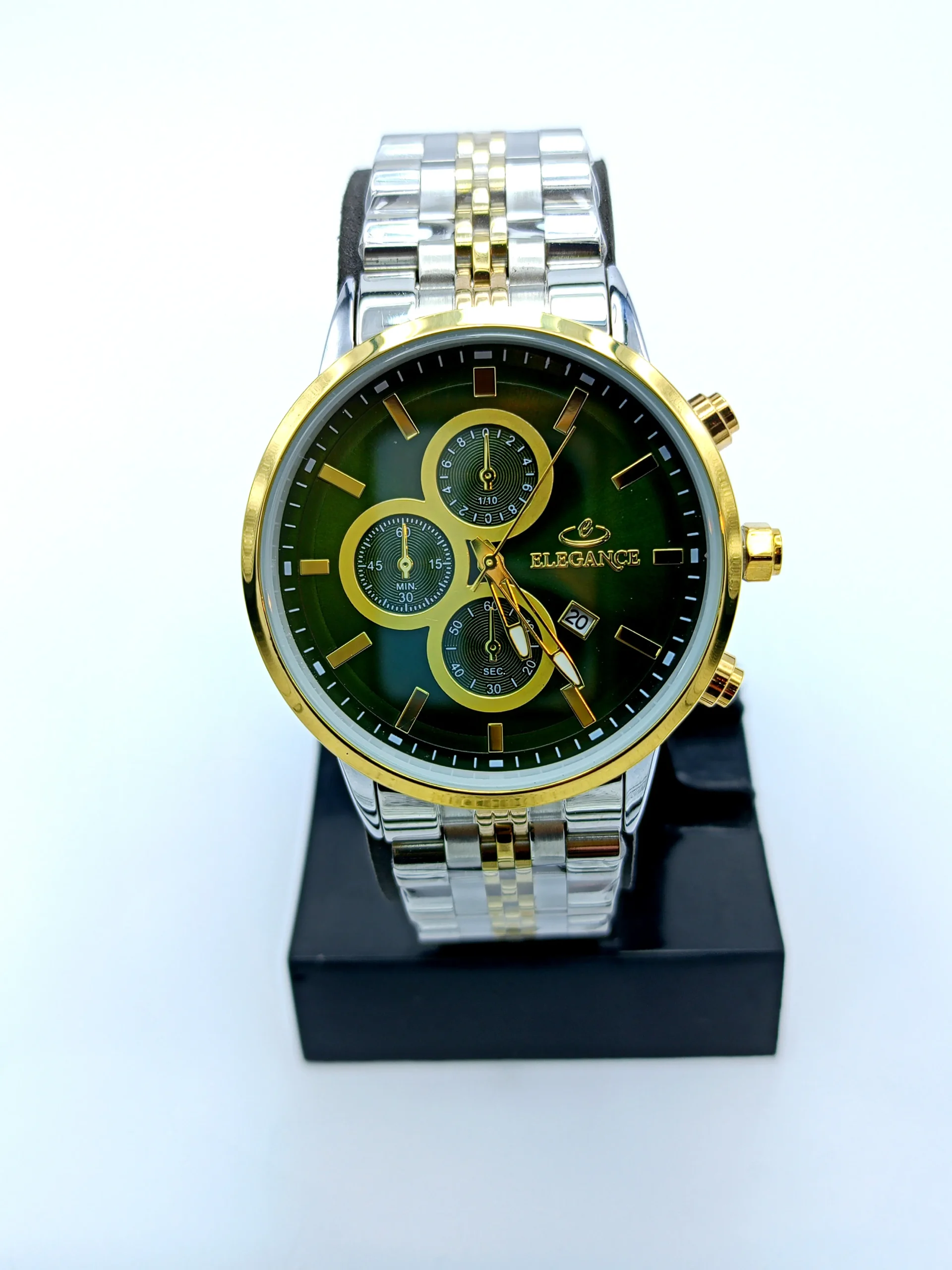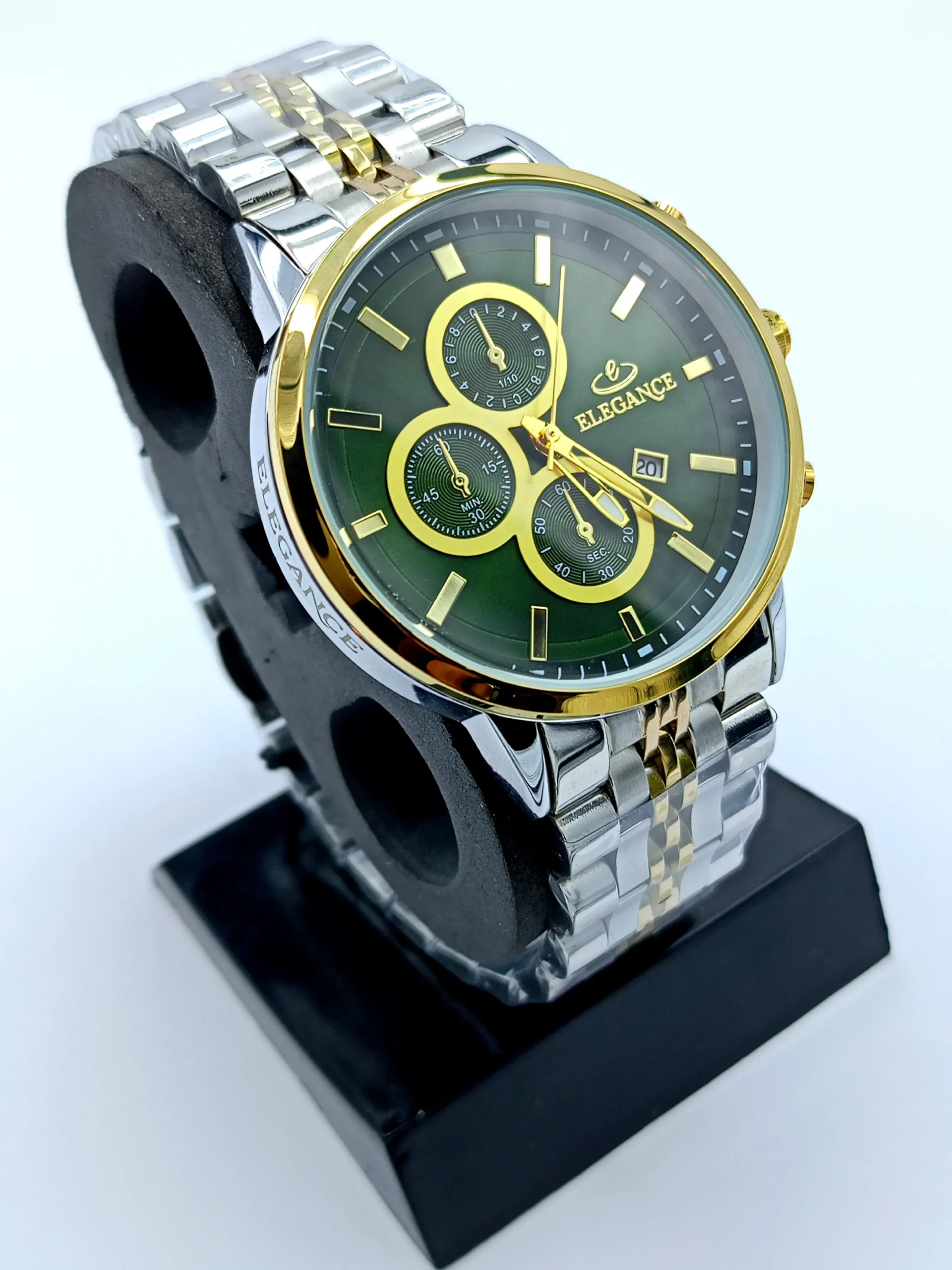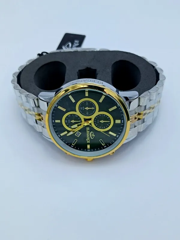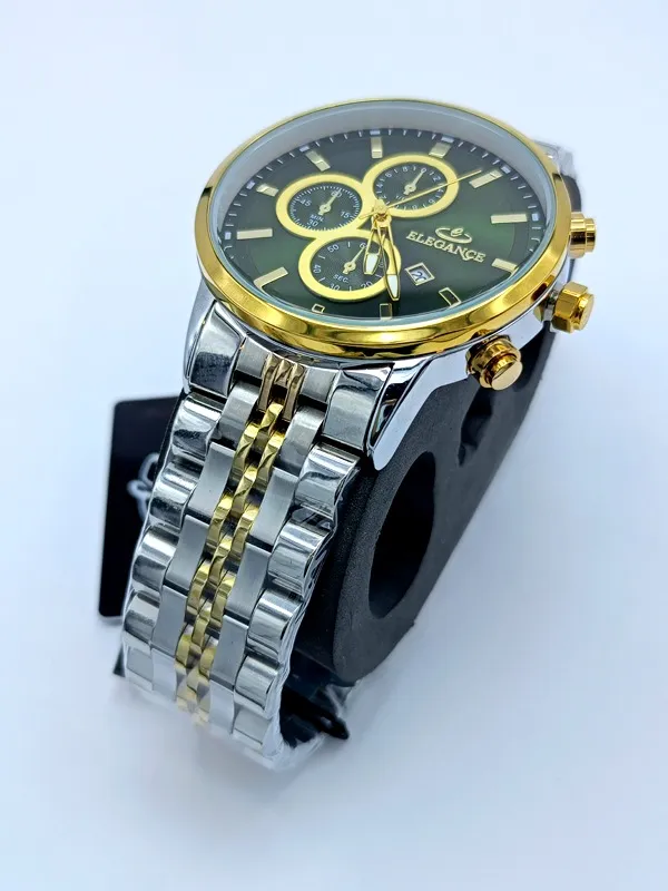 بند و بدنه از متریال باکیفیت—مثلاً استیل ضدزنگ، بند چرمی خوب، شیشه مقاوم. (در برند خاصی که در ایران با نام Elegance عرضه میشود، همین حالت دیده شده است.